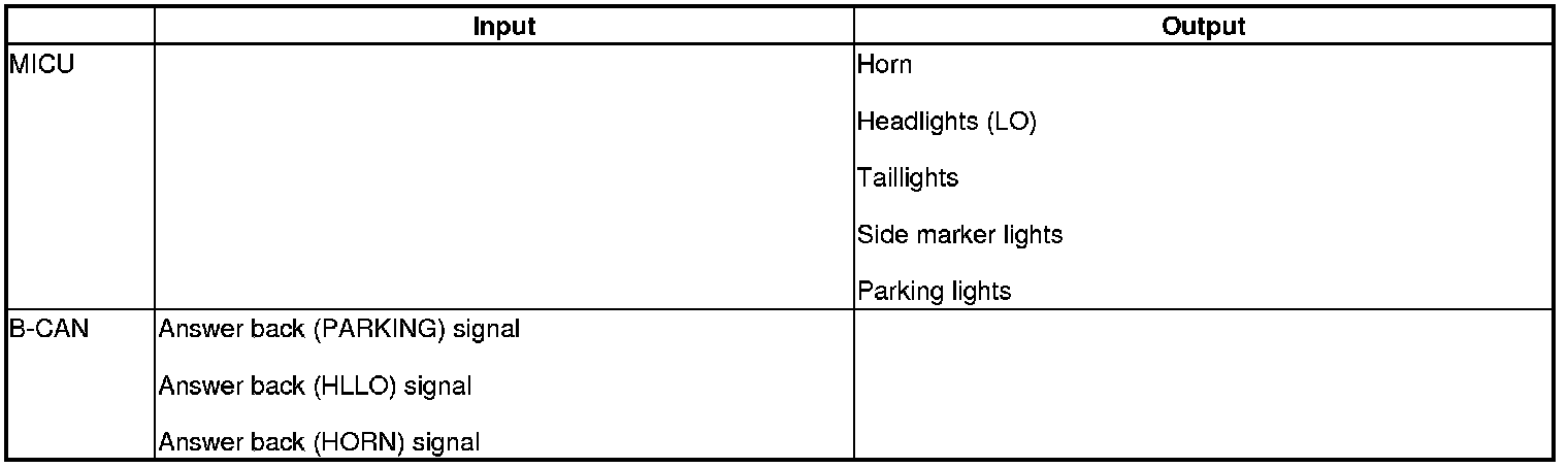The MICU control of the lighting system and horn is based on keyless signals sent by B-CAN data.
