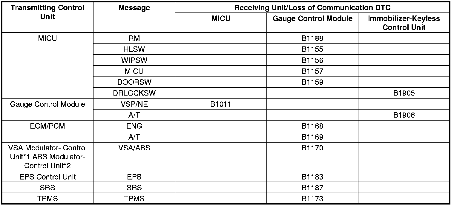 When an ECU on the CAN circuit is unable to communicate with other ECUs on the CAN circuit, the other control units will set loss of communication DTCs. Use this chart to find the control unit that is not communicating with the other control units on the CAN circuit.