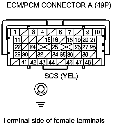 7. Check for continuity between ECM/PCM connector terminal A32 and body ground.