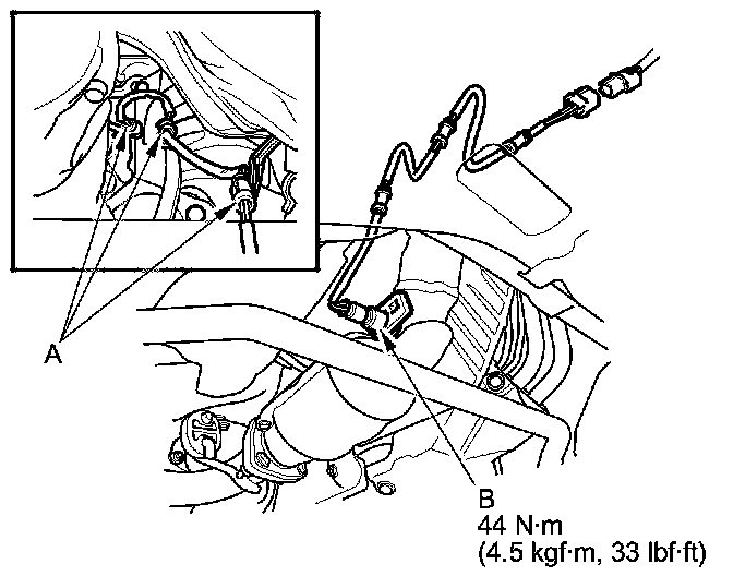 3. Remove the supporters (A), then remove the secondary HO2S (B).