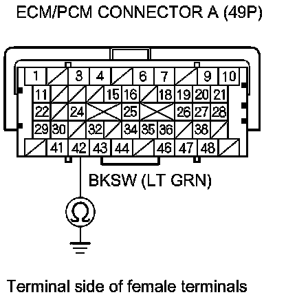 8. Check for continuity between ECM/PCM connector terminal A42 and body ground.