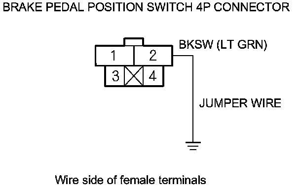 9. Connect brake pedal position switch 4P connector terminal No. 2 to body ground with a jumper wire.