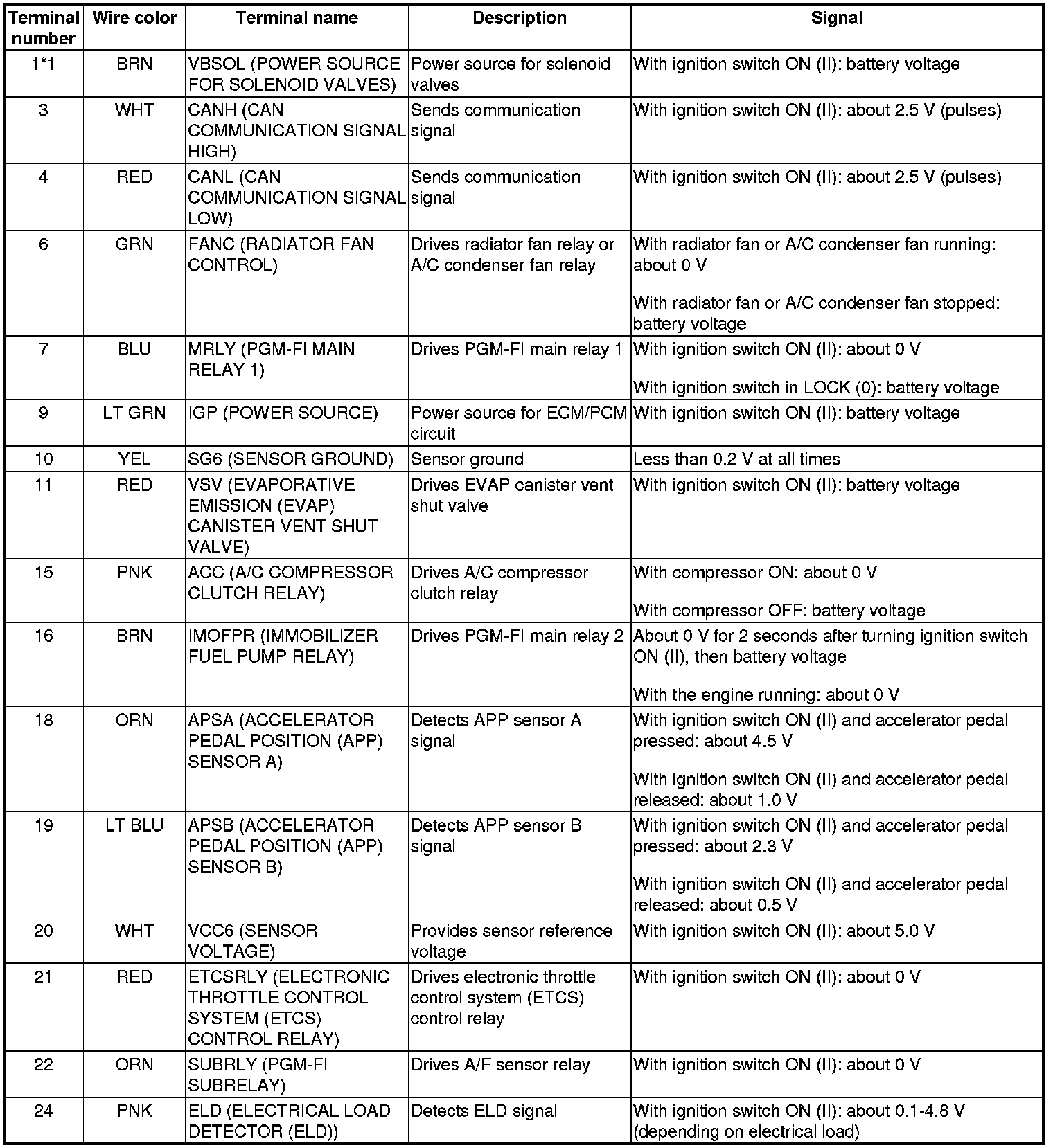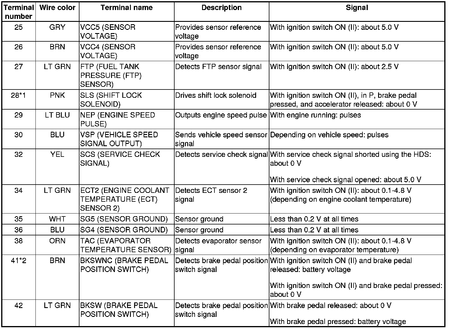 ECM/PCM Inputs and Outputs at ECM/PCM Connector A (square) (49P)