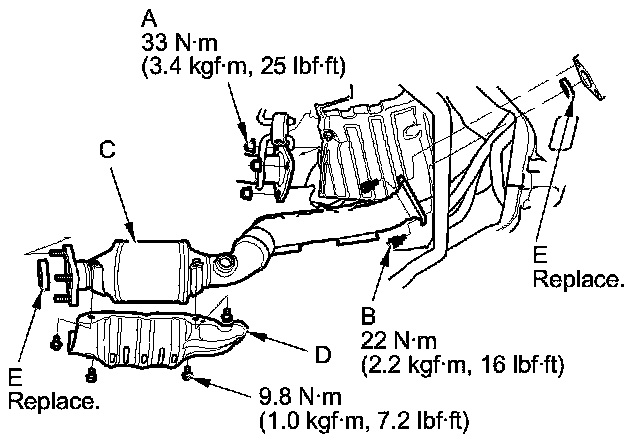 6. Install the parts in the reverse order of removal with new gaskets (E).