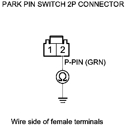 17. Check for continuity between park pin switch 2P connector terminal No. 1 and body ground.
