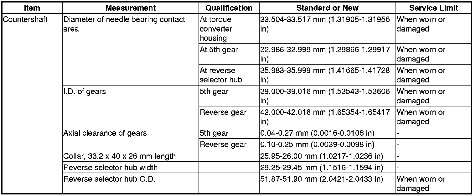 Countershaft Specification(s) (A/T)