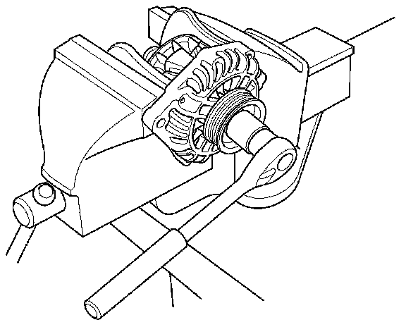 7. If you are not replacing the front bearing and/or the rear bearing, go to step 15. Clamp the rotor in a soft-jawed vise, then remove the pulley locknut.