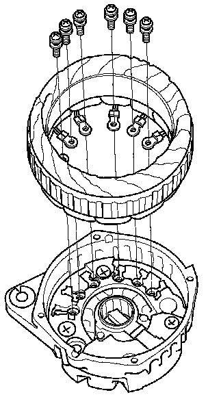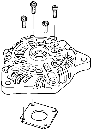27. Install the voltage regulator/brush holder assembly and the rectifier on the rear housing.