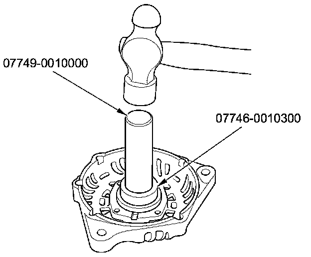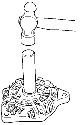 14. Install a new front bearing in the drive-end housing with a hammer, the driver handle, 15 x 135L, and the bearing driver attachment, 42 x 47 mm.