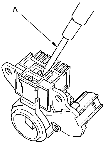 20. Unsolder the brush leads from the voltage regulator/brush holder assembly with a 100 W soldering iron (A), then replace the brushes.