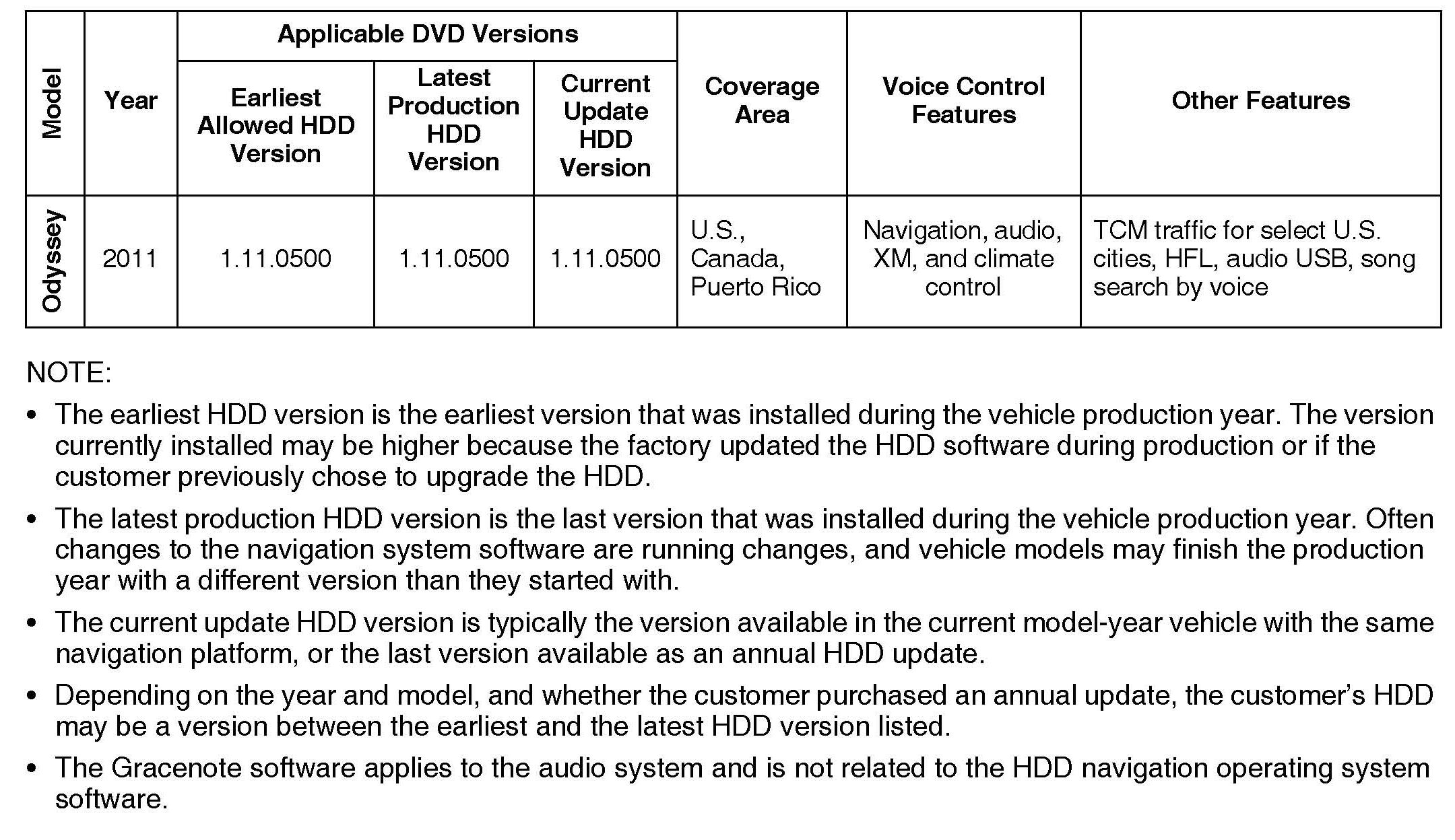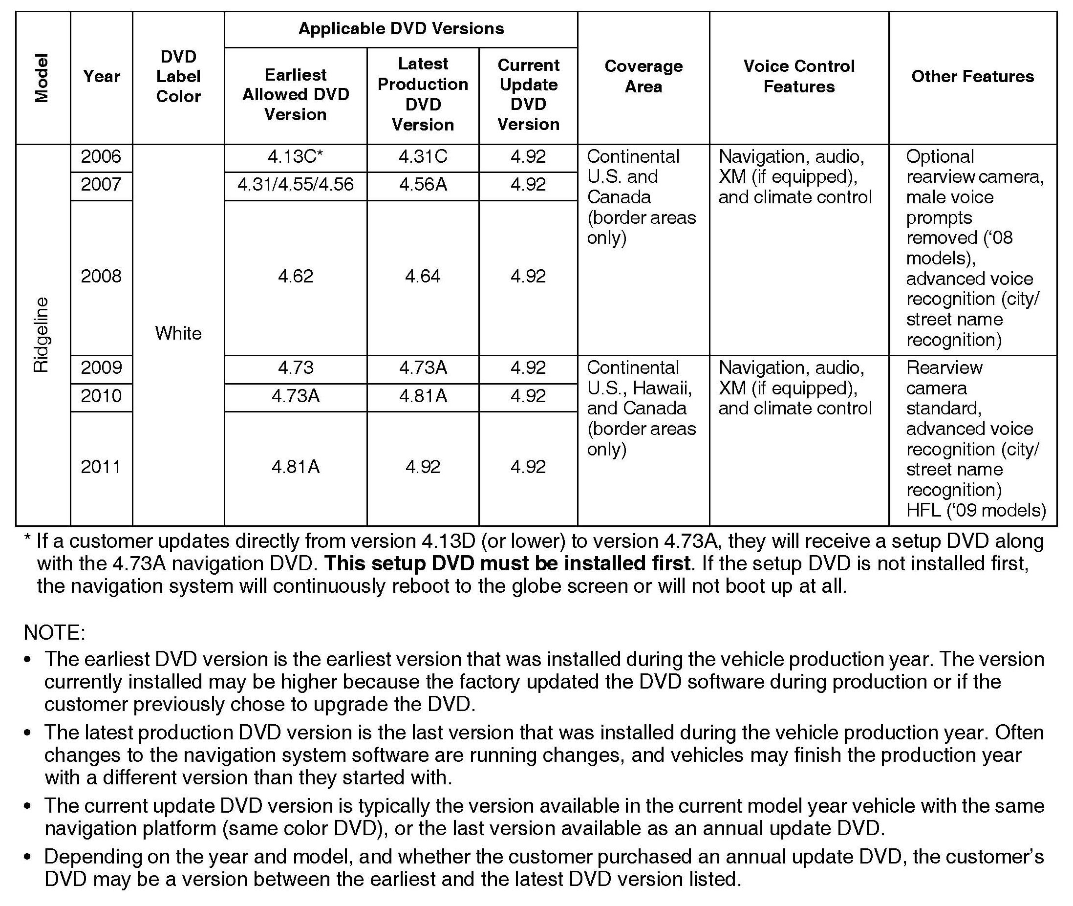 ^ Refer to the version chart in this service bulletin when ordering any navigation system DVD.