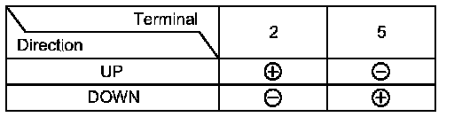 2. Test the motor in each direction by connecting battery power and ground to the rear power window switch 5P connector (A) according to the table.