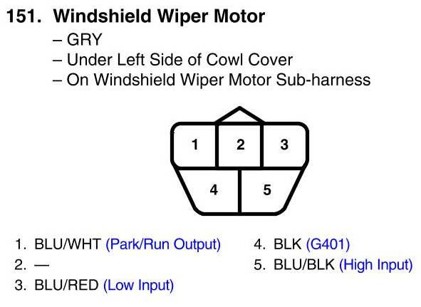 View 151 - Windshield Wiper Motor Connector View