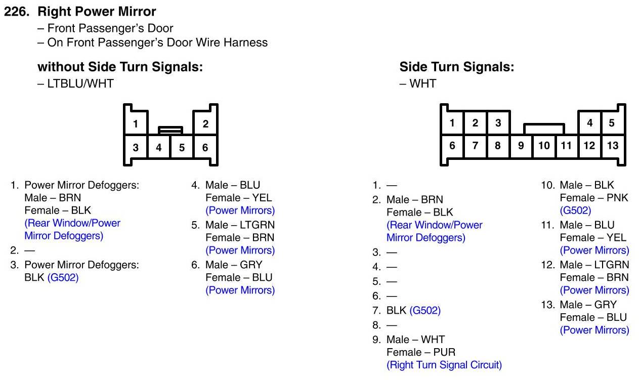 View 226 - Right Power Mirror Connector View