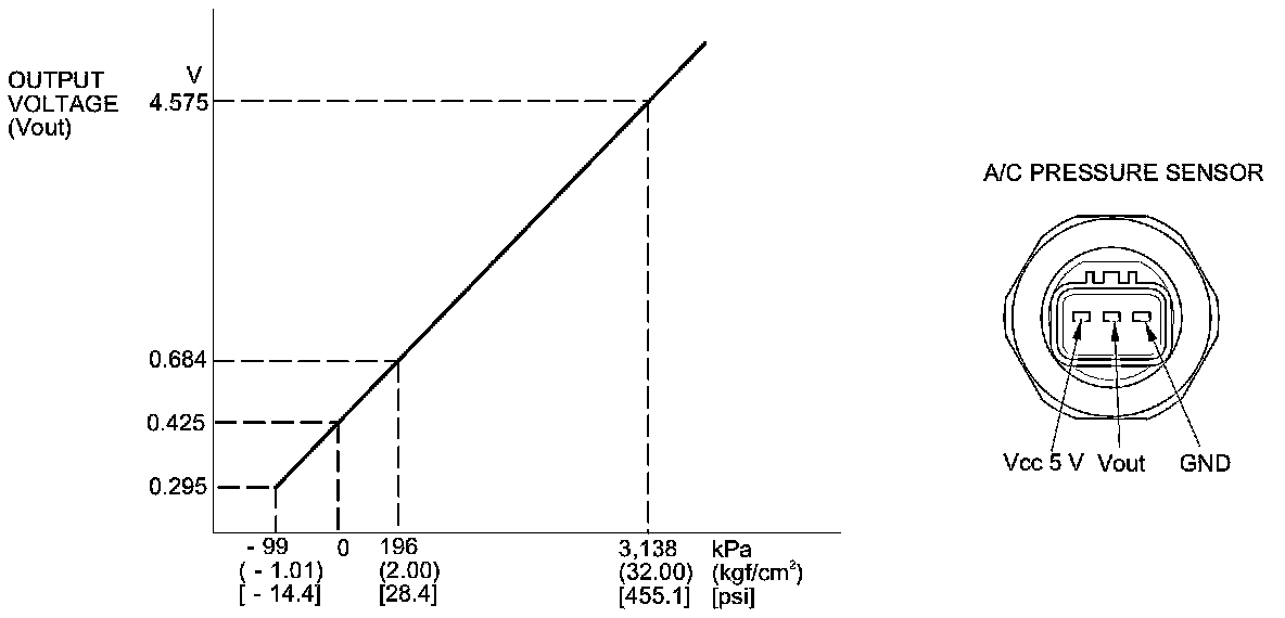 The response of the A/C pressure sensor is shown in the graph.