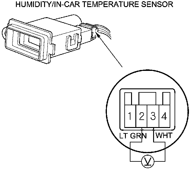 4. If the voltage is not as specified, replace the humidity/in-car temperature sensor Humidity/In-Car Temperature Sensor Replacement.