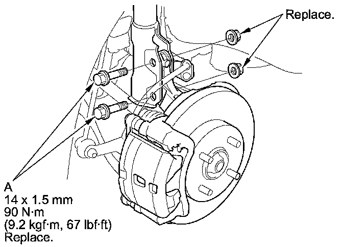 10. Replace the damper pinch bolts with the adjusting bolts (A), and adjust the camber angle.
