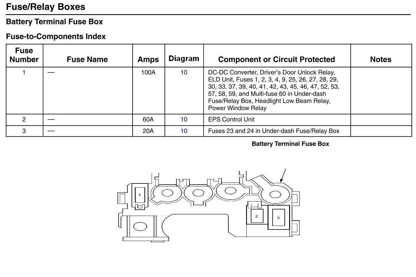 Battery Terminal Fuse Box - Fuse-To-Components Index