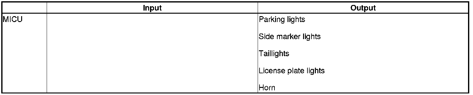 The MICU control of the exterior lights and the horn is based on inputs from each switch and B-CAN data.