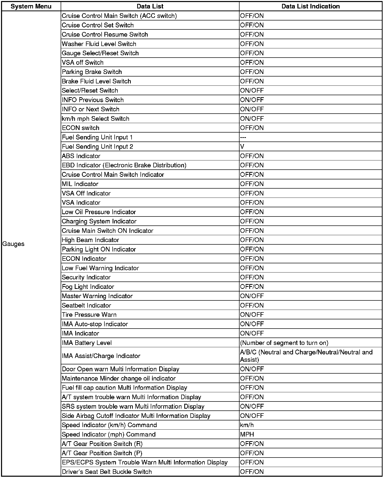 The body controller area network (B-CAN) and the fast controller area network (F-CAN) share information between multiple electronic control units (ECUs). B-CAN communication moves at a slower speed (33.33 kbps) for convenience related items and for other functions. F-CAN information moves at a faster speed (500 kbps) for "real time" functions such as fuel and emissions data. To allow both systems to share information, the gauge control module translates and relays the information from B-CAN to F-CAN and from F-CAN to B-CAN. This is called the Gateway Function.