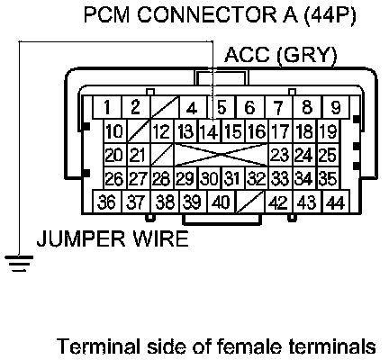 13. Momentarily connect PCM connector terminal A14 to body ground with a jumper wire several times.