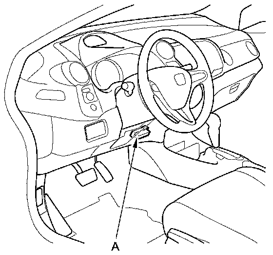 2. Connect the HDS to the data link connector (DLC) (A) located under the driver's side of the dashboard.