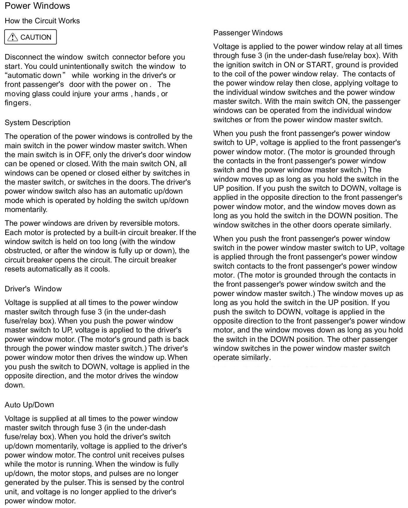 How The Power Windows Circuit Works