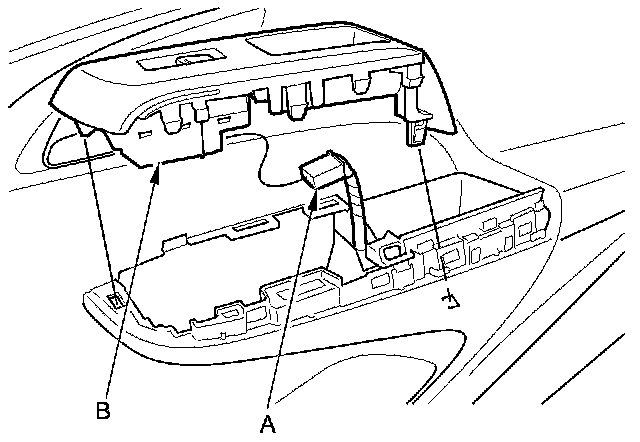 3. Disconnect the 8P connector (A) from the passenger's power window switch (B).