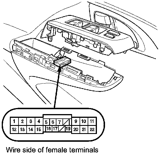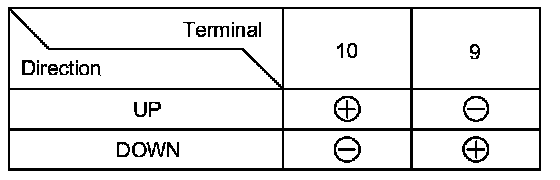 2. Test the motor in each direction by connecting battery power and ground to the power window master switch 22P connector according to the table.