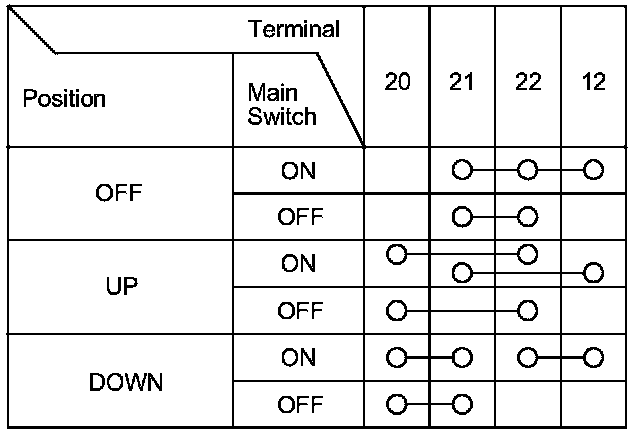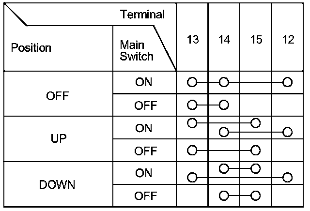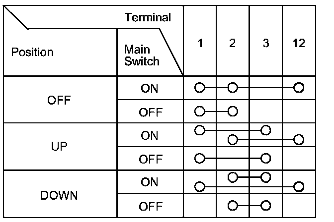 3. Check for continuity between the terminals in each position according to the tables.