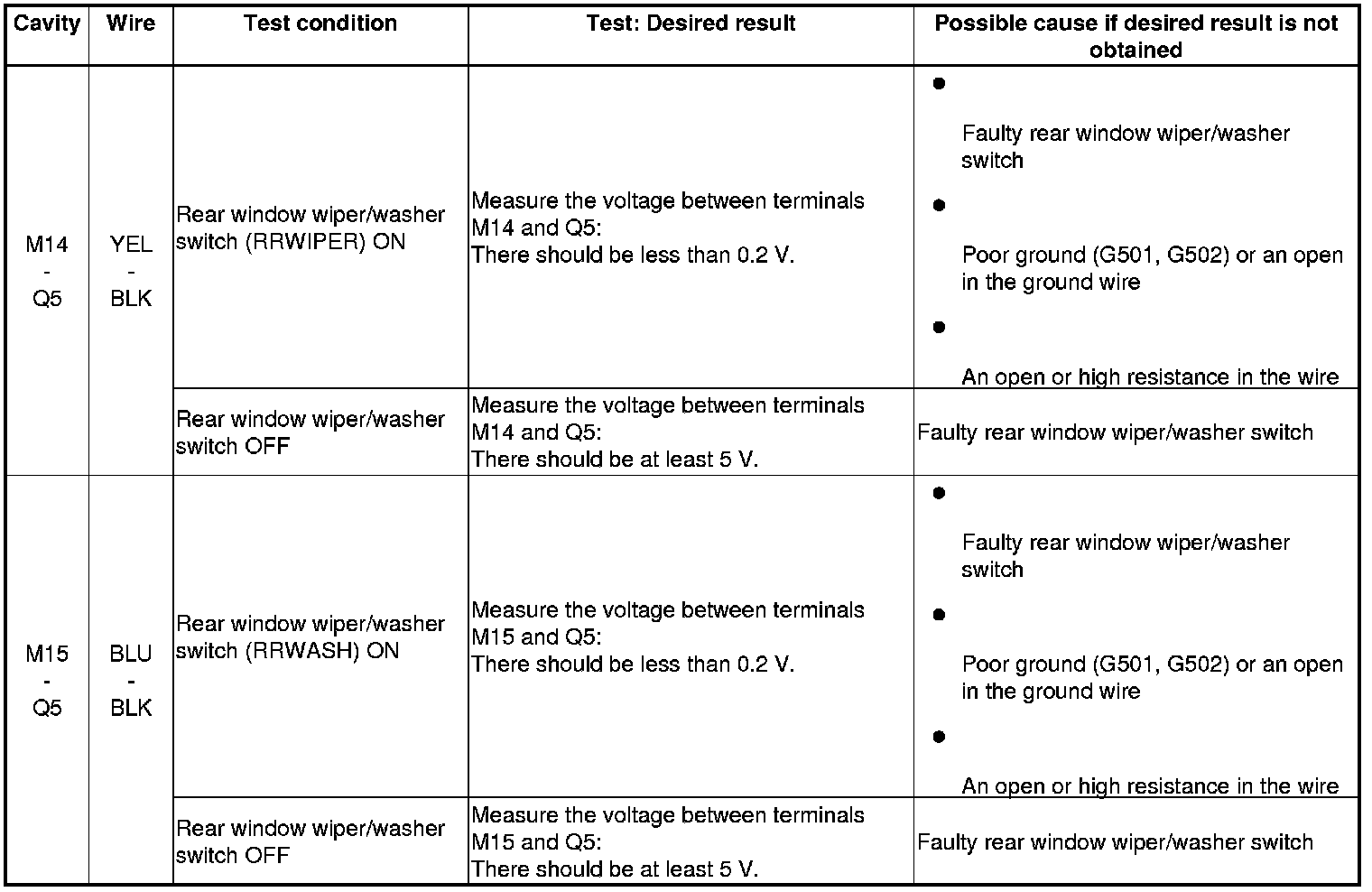 - If the rear window wiper malfunctions, and no DTCs are detected, check the rear window wiper motor and for an open in the ground circuit of the rear window wiper.