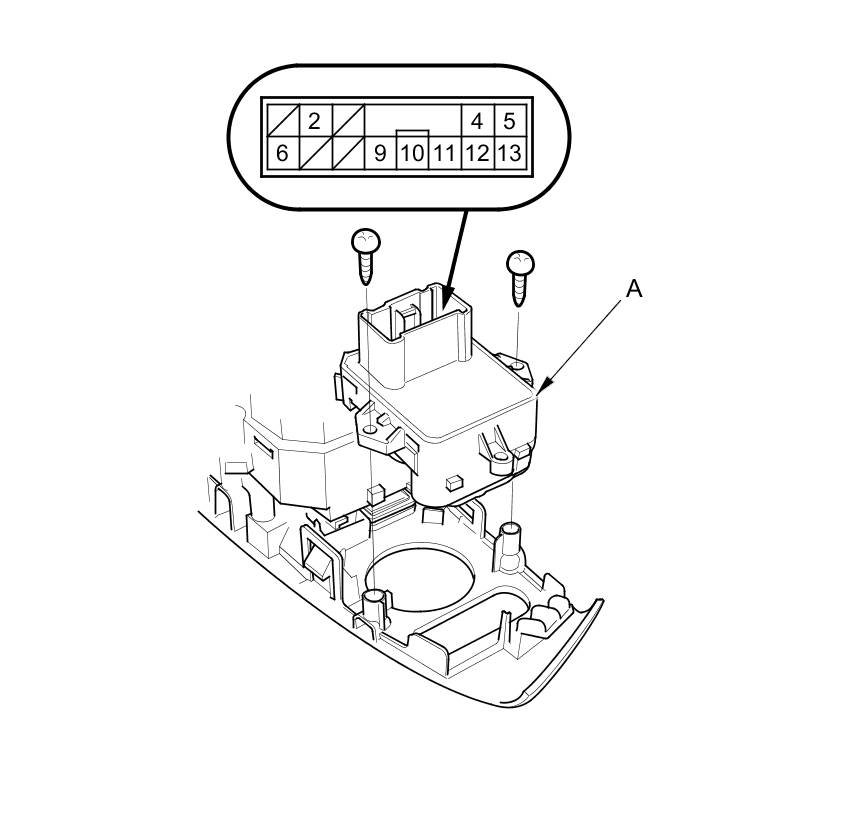 2. Disconnect the 13P connector from the power mirror switch (A).