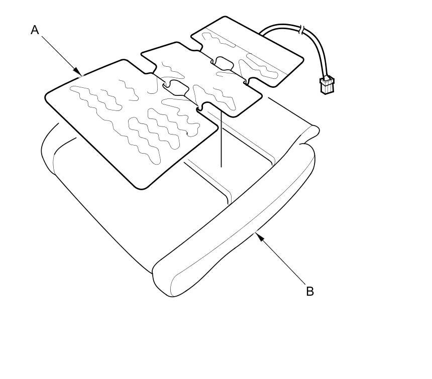2. Carefully remove the seat cushion heater (A) from the seat cushion pad (B).