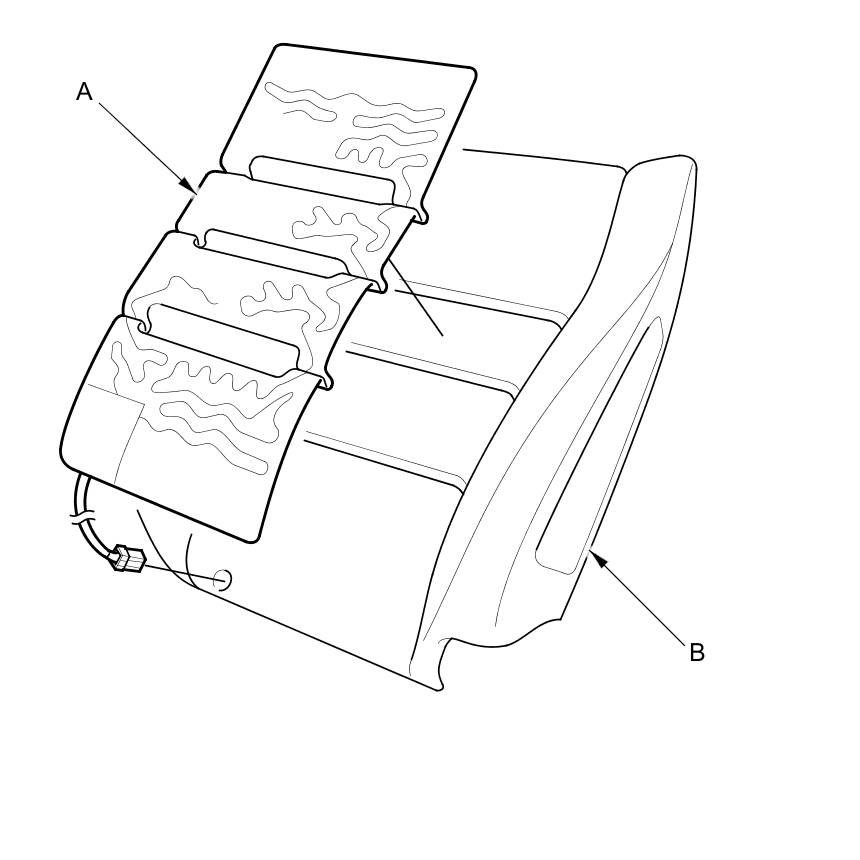 2. Carefully remove the seat back heater (A) from the seat back pad (B).