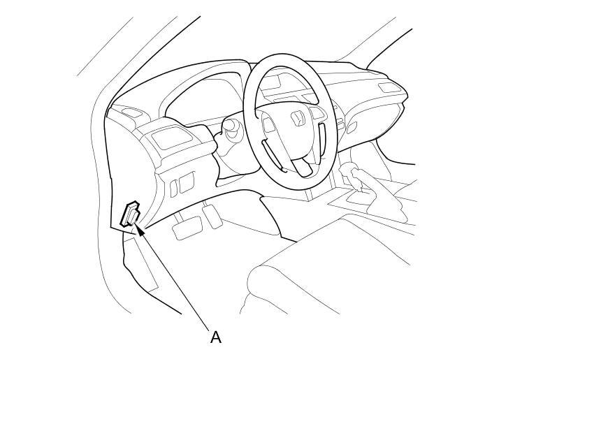 2. With the ignition switch in LOCK (0), connect the HDS to the data link connector (DLC) (A) under the driver's side of the dashboard.