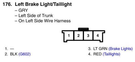 View 176 - Left Brake Light/Taillight Connector View