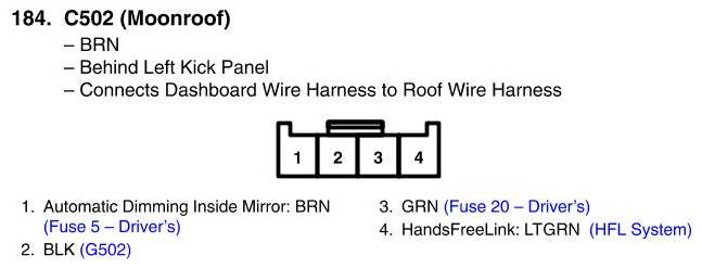 View 184 - C502 Connector View (Moonroof)