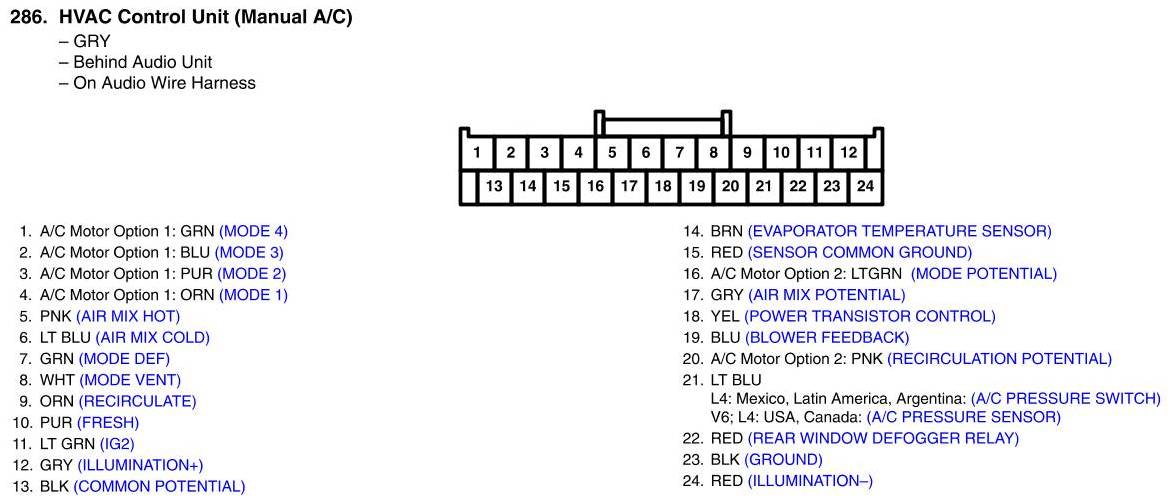 HVAC Control Unit Connector View (Manual A/C)