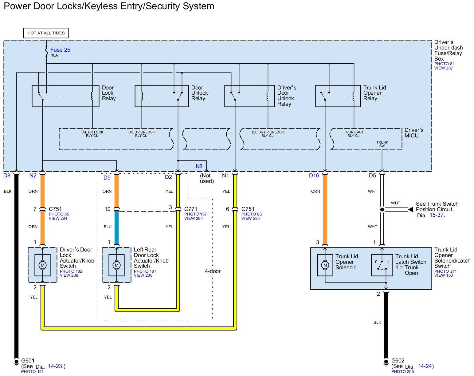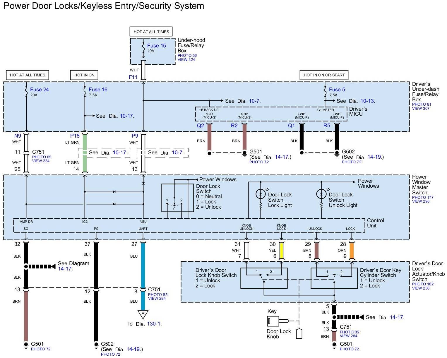 Diagram Set 130 (Power Door Locks/Keyless Entry/Security System)