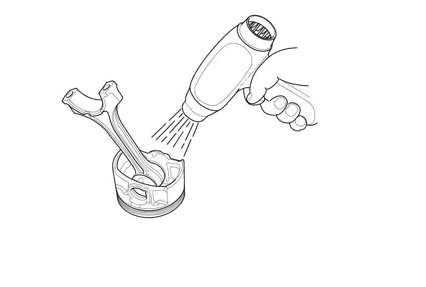 2. Coat the piston pin bore in the piston, the bore in the connecting rod, and the piston pin with new engine oil.