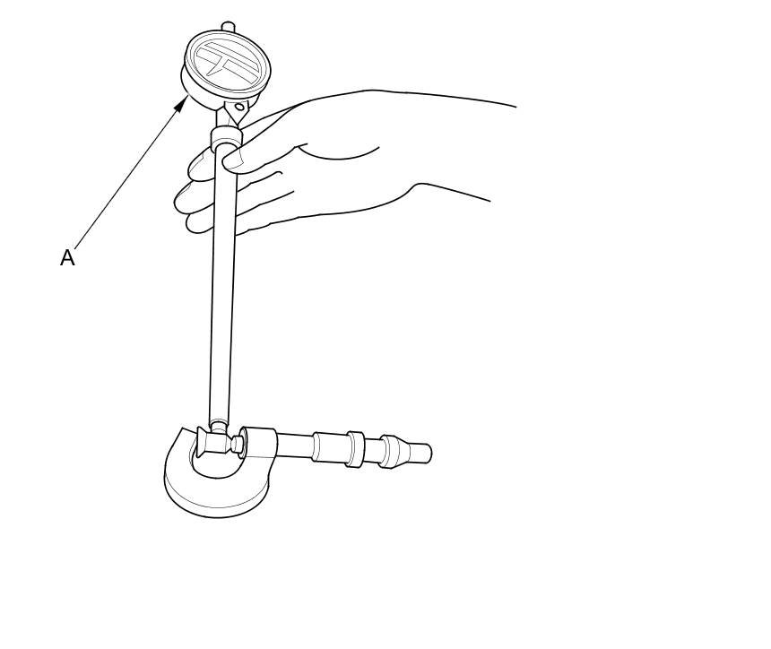2. Zero the dial indicator (A) to the piston pin diameter.