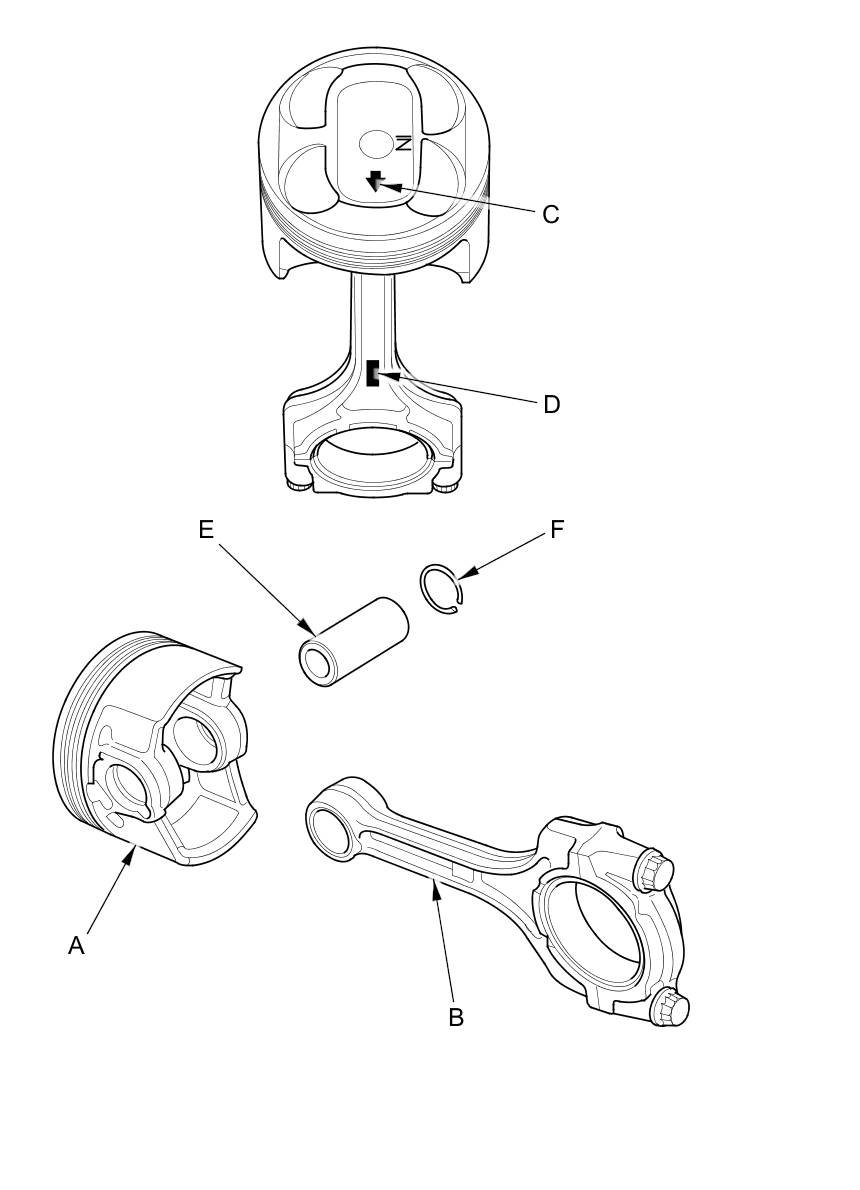 NOTE: Inspect the piston, the piston pin, and the connecting rod when they are at room temperature.