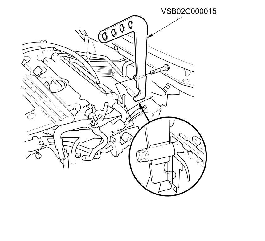 3. Attach the engine hanger adapter (VSB02C000015) to the threaded hole located on the rear side of the cylinder head.