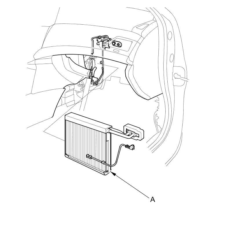 7. Carefully pull out the evaporator core (A) without bending the lines.