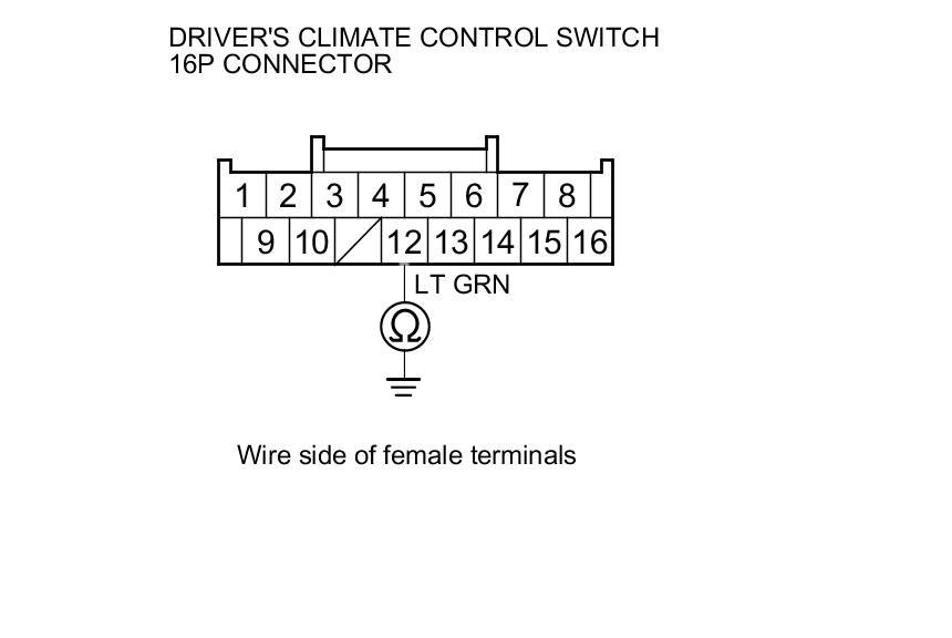 19. Check for continuity between driver's climate control switch 16P connector terminal No. 12 and body ground.