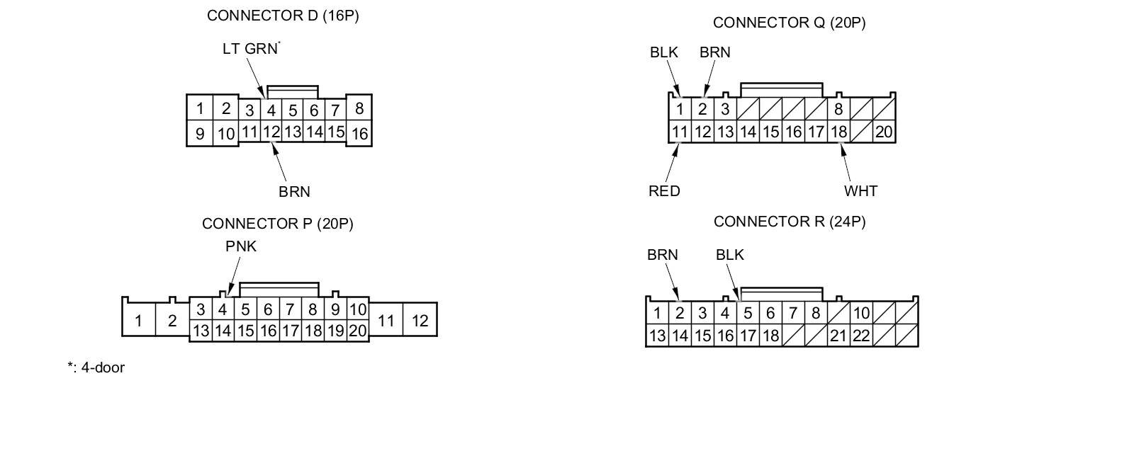 3. Disconnect driver's under-dash fuse/relay box connectors D, P, Q, and R.