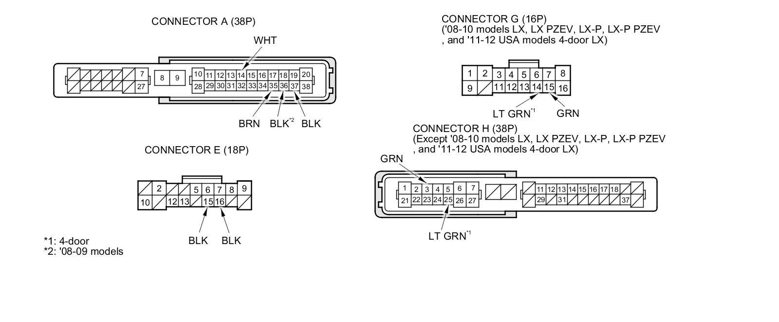 NOTE: Before testing, troubleshoot the multiplex integrated control unit first, using B-CAN System Diagnosis Test Mode A Troubleshooting - B-CAN System Diagnosis Test Mode A.
