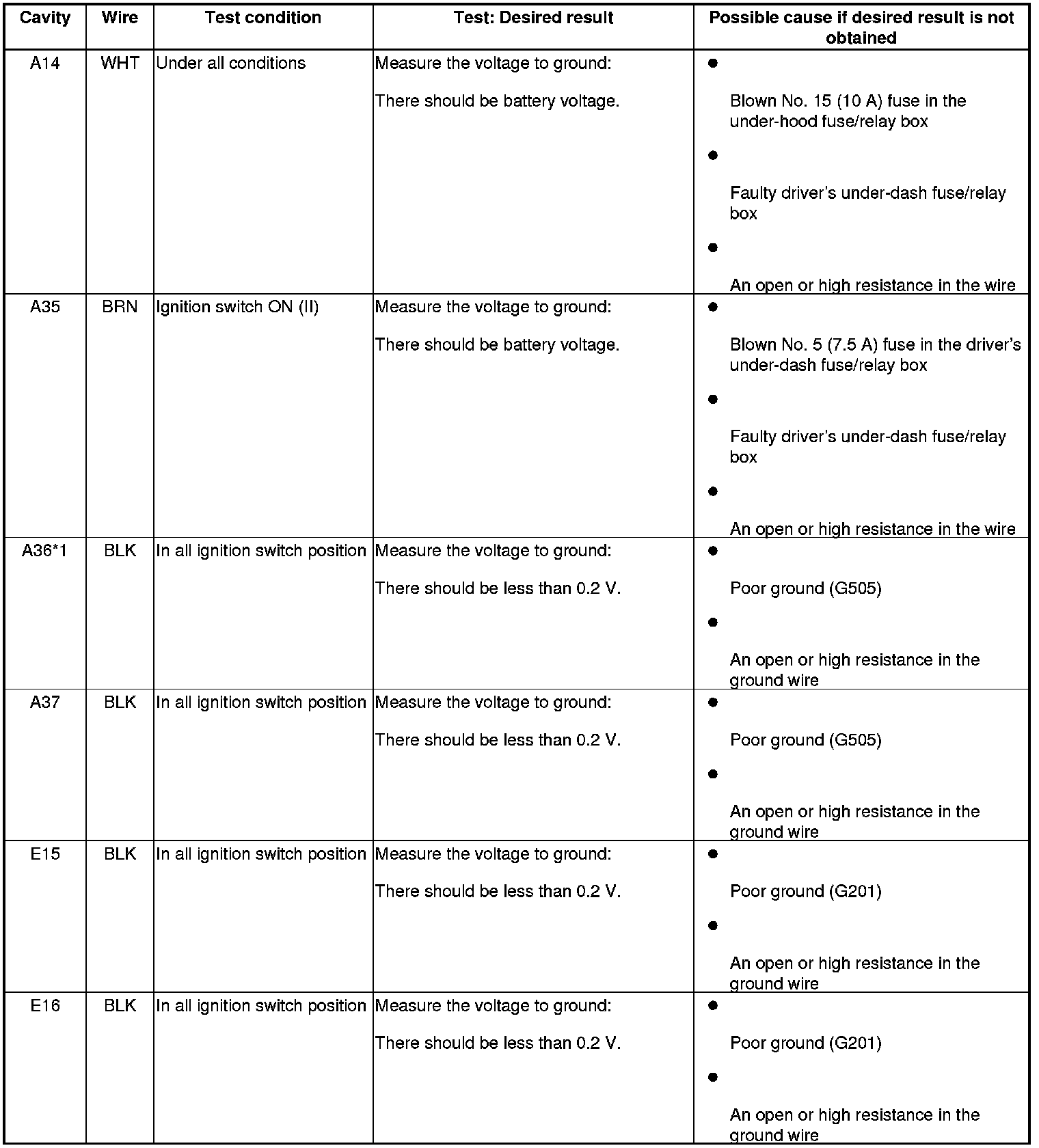5. Reconnect the connectors to the driver's under-dash fuse/relay box, and do the following input tests: