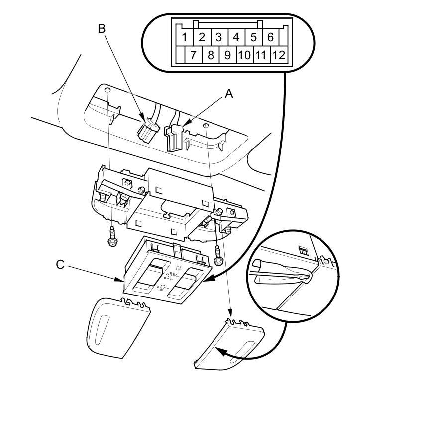 3. Remove the moonroof switch (C) from the map light housing.