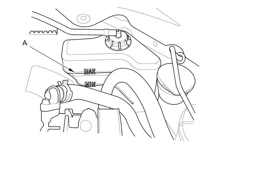 5. Fill the coolant reservoir to the MAX mark (A) with Honda Long Life Antifreeze/Coolant Type 2.